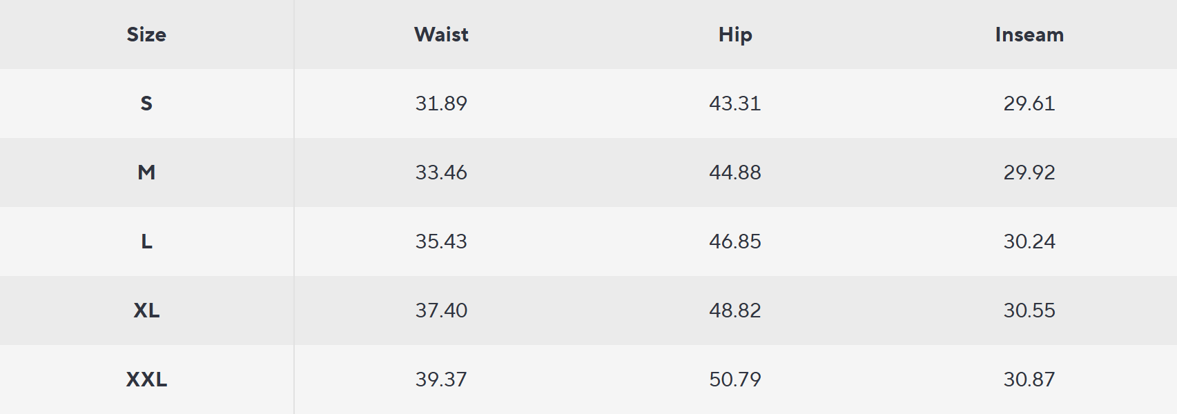 Size chart measurements are taken in inches.